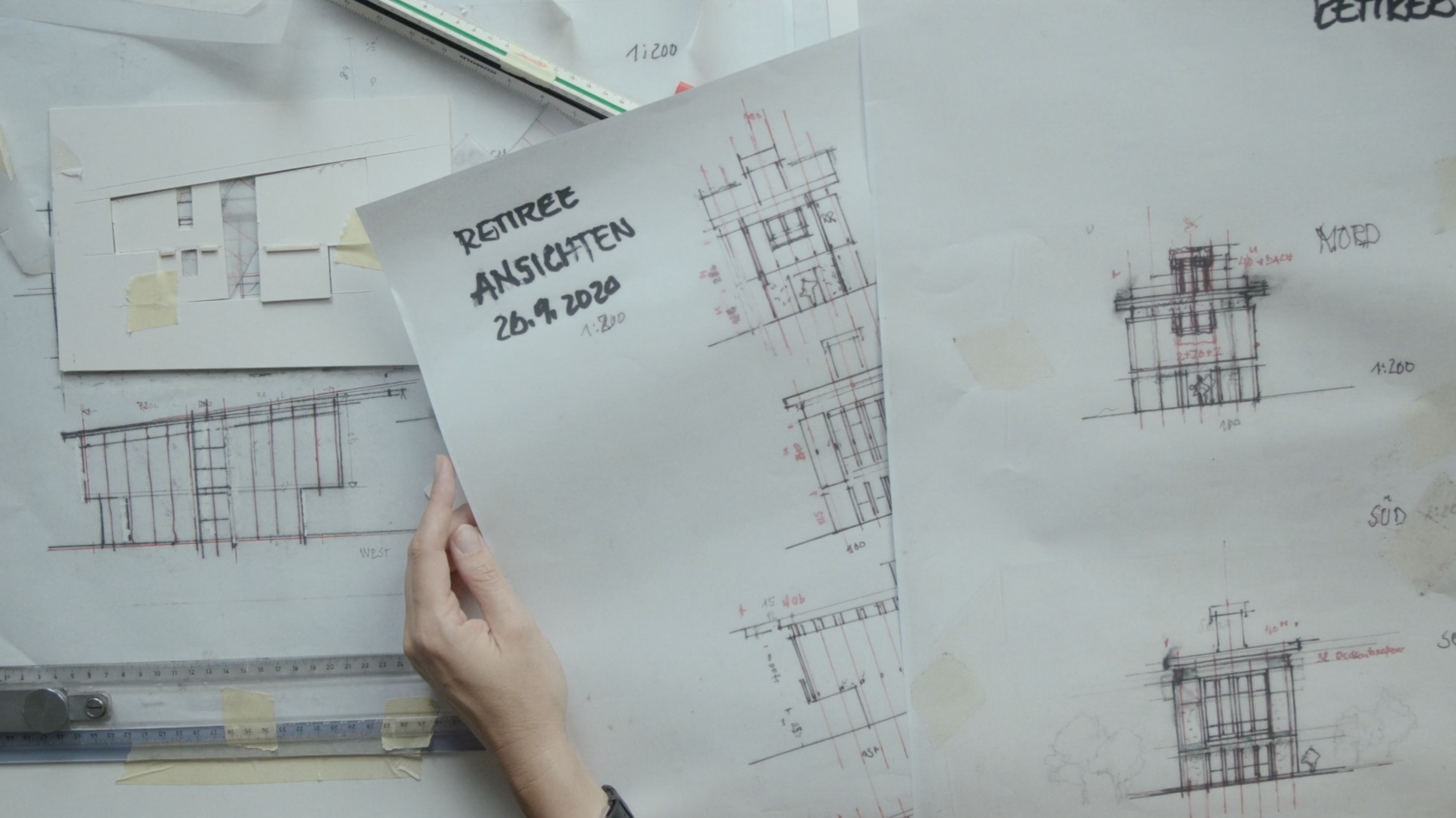 A daughter asks her father to draw Das Rétirée, the never built house he designed before he retired as an architect. While he’s drawing, a conversation unfolds in which Das Rétirée is presented as a place of serene distance where difficult conversations can be had. As they start building an architectural model of the house, the film itself becomes this retreat: the safe space in which father and daughter talk about subjects for which there seems to be no place in everyday life.